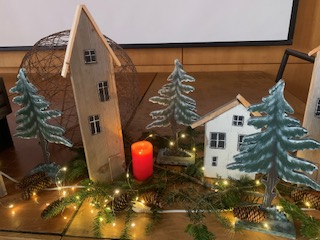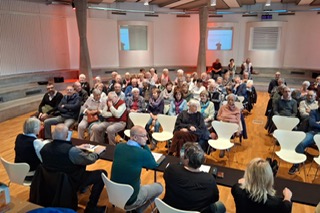 Cette première rencontre s'est déroulée dans la salle de l'ancienne maison de paroisse, un lieu parfaitement approprié pour notre génération de retraités. En y créant une atmosphère de pré-Noël, la soixantaine de personnes s'est rapidement sentie à l'aise.